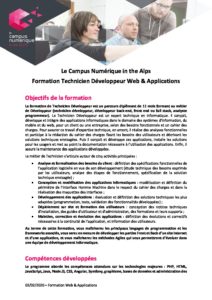 Programme Formation Technicien Developpeur Web et applications